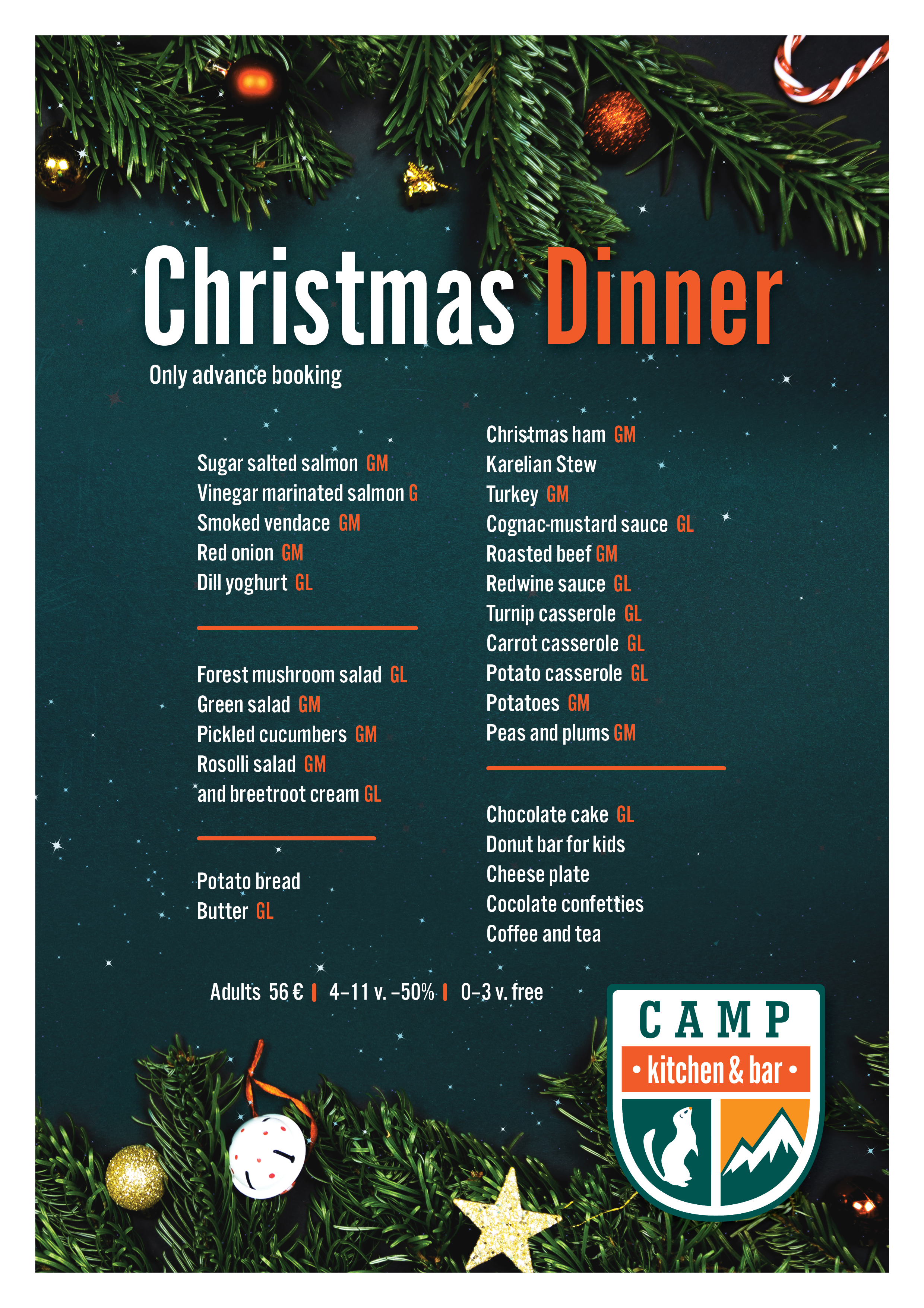 At CAMP Kitchen&Bar we only serve our own favorite foods inspiredby the recipes around the world. The company is great, the wineroomis open and you are welcome to stay far too long. You gotta loveour way of camping.
